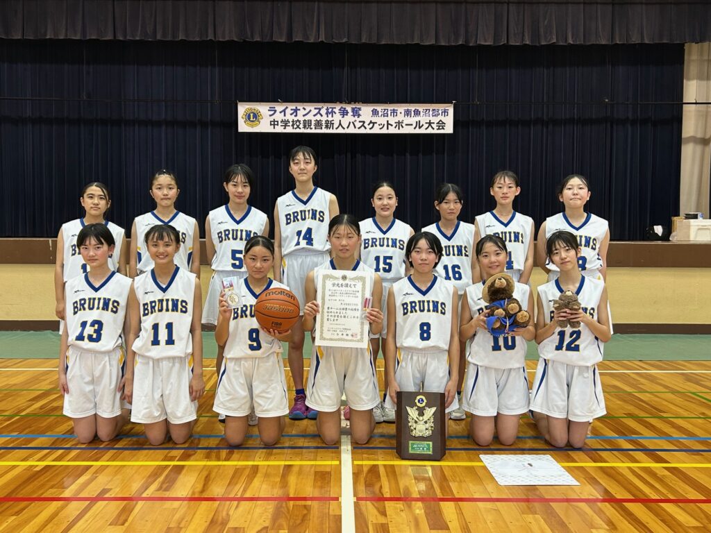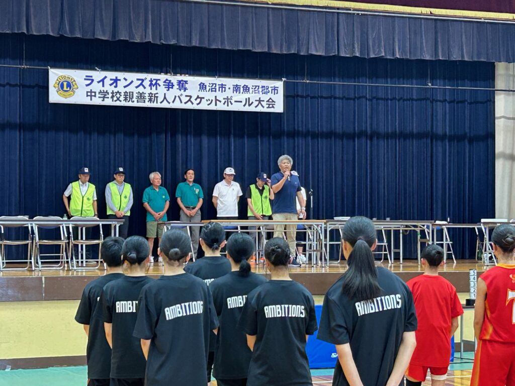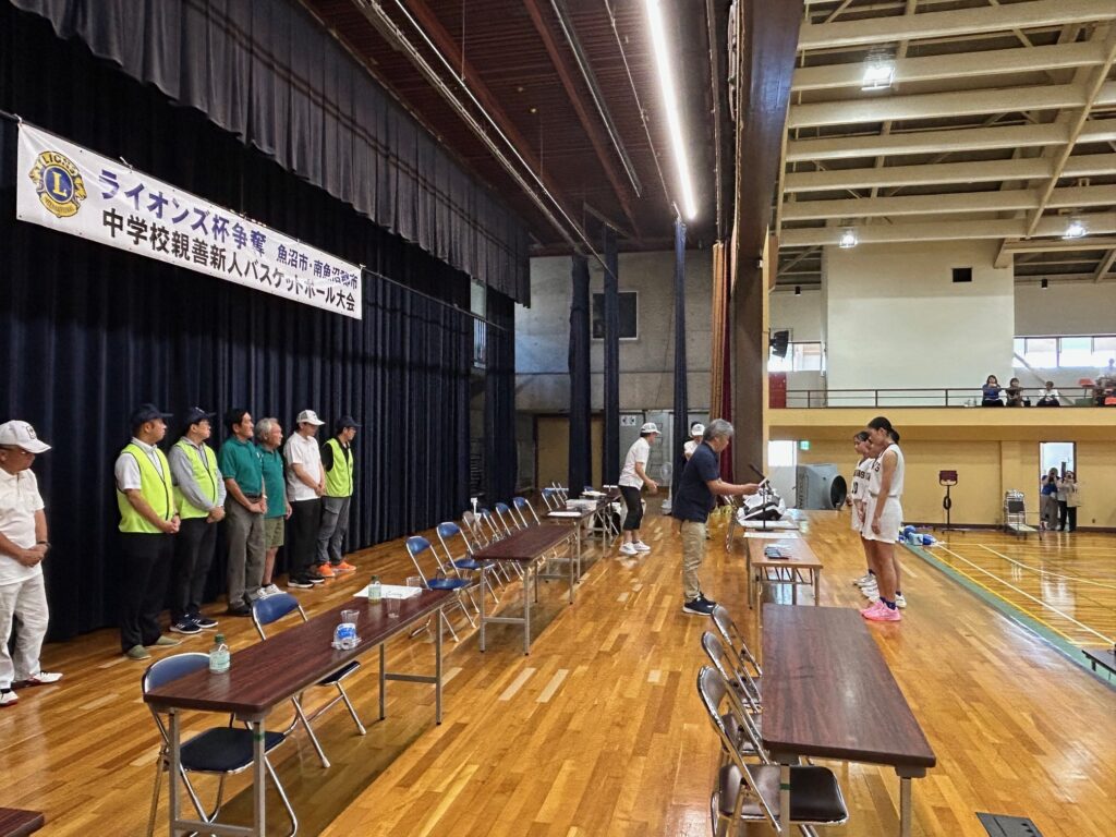 活動報告 第11回ライオンズクラブ杯争奪 魚沼市・南魚沼郡市中学校親善新人バスケットボール大会(女子) 2025.08.25 Post Share Line RSS feedly 記事のタイトルとURLをコピーする 令和7年8月23日(土)、魚沼市総合体育館にて女子の魚沼市・南魚沼郡市中学校親善新人バスケットボール大会を開催しました。優勝は魚沼BRUINS、準優勝は大和中学校でした。参加した選手の皆さん、応援して下さった保護者の皆様、有難うございました! 第1514回例会 前の記事 第11回ライオンズクラブ杯争奪 魚沼市・南魚沼郡市中学校親善新人バスケットボール大会(男子) 次の記事