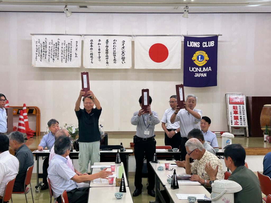 本日の例会では、2025-2026年度新潟県ライオンズアイバンク協議会会員委嘱状伝達、副理事長 第2副地区ガバナーL横山、6R1Z担当理事 L今井、新入会員・スポンサーへバッヂ記念品伝達、中学校球技大会のご案内、第62回魚沼市小学生親善野球大会のご案内、魚沼LCチャリティーグリーンミーティングのご案内、6Rゾーンチェアパーソン主催チャリティ親善ゴルフ大会のご案内、テールツイスター登場、魚沼LC納涼会の報告、六日町LC納涼会の報告、湯沢LC納涼会の報告、333複合地区WYPT・GST一泊研修会のご案内、連絡事項がありました。